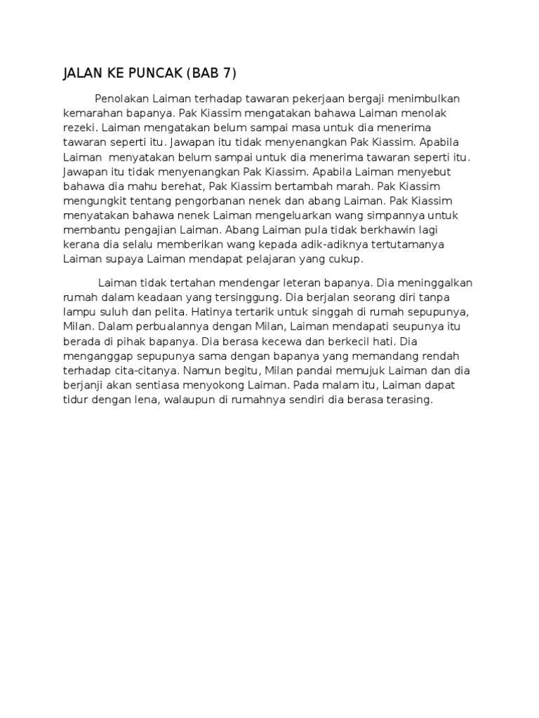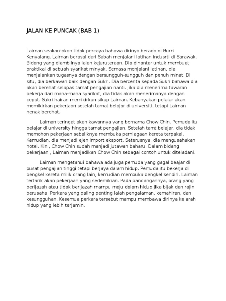 Jalan Ke Puncak Sinopsis Bab 1 Form 2 2016 2019 Pdf